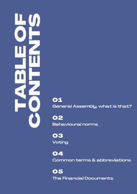 The GA (in Dutch: ALV), also known as the "General Assembly" (In Dutch: “Algemene Ledenvergadering”) is the highest body of our study association and consists of all members of Cedo Nulli.